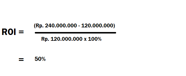 Dari sini diketahui apabila keuntungan sebesar Rp. 120.000.000. Pertanyaannya, berapakah ROI perusahaan pak Eko?